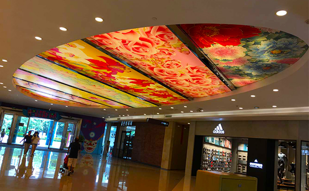 卡布軟膜燈箱不僅限于室內壁掛式或是立式的廣告,也不限于正正規(guī)規(guī)的長方形或正方形,像這種商業類的天花軟膜燈箱現在也是裝飾裝潢的新形勢,特別創意的廣告可以快速吸引消費者眼球.